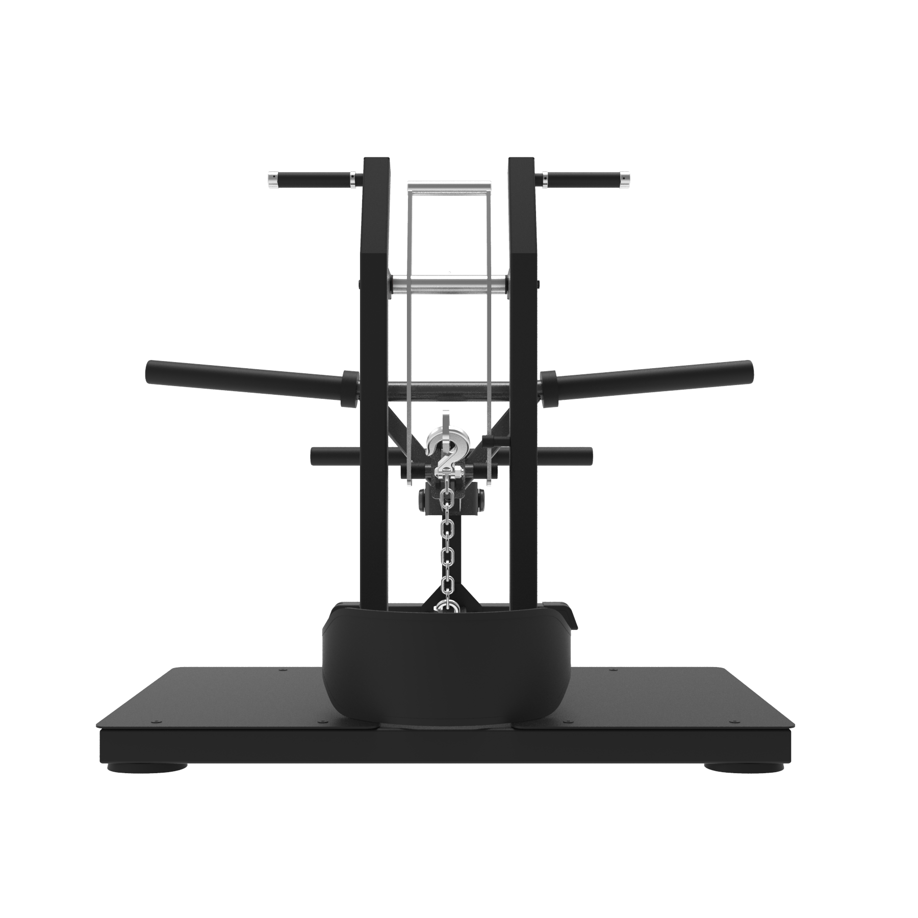 Allows you to perform squats with the load distributed across the hips, eliminating lumbar pressure. Ideal for high-volume training and injury prevention.
