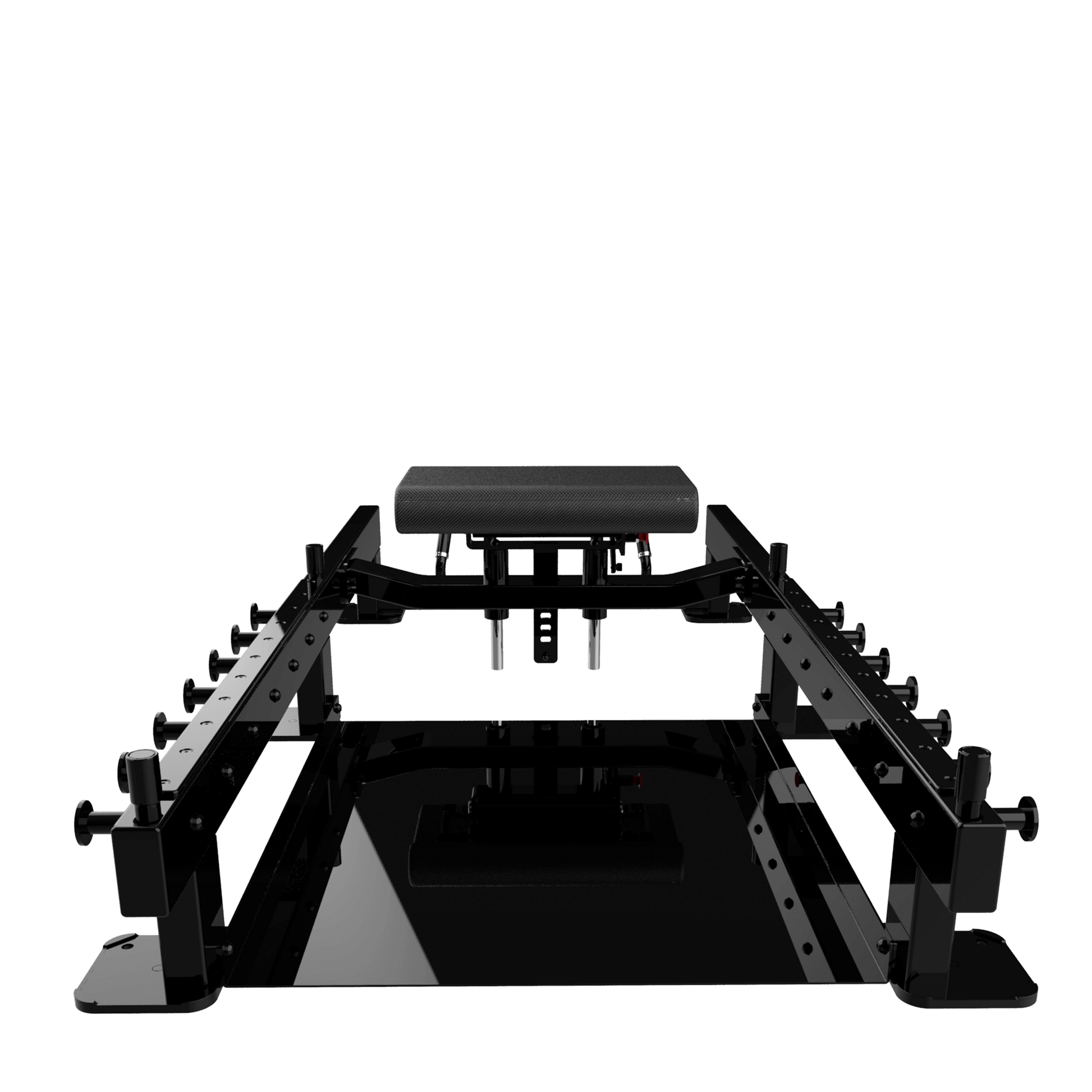 Professional hip thrust bench with padded support and safety system. It allows you to isolate the glutes and hamstrings with maximum comfort and stability.