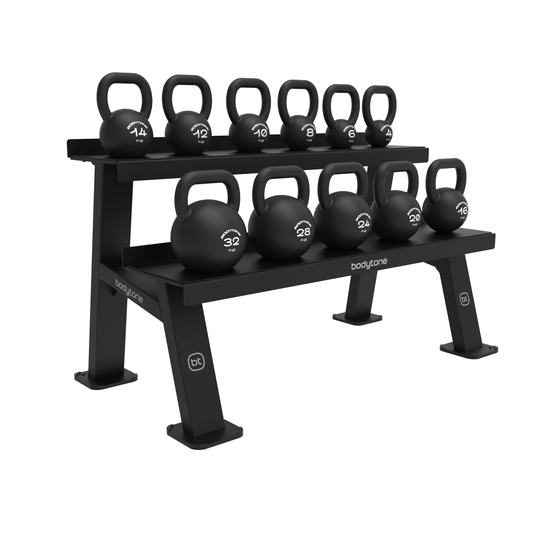 The Bodytone Kettlebell Rack is designed to keep your kettlebells organized, accessible, and secure. Its reinforced steel frame with an epoxy paint finish ensures high resistance to intensive use. The non-slip shelves allow for stable storage of different weights, optimizing space in any functional area or training room.