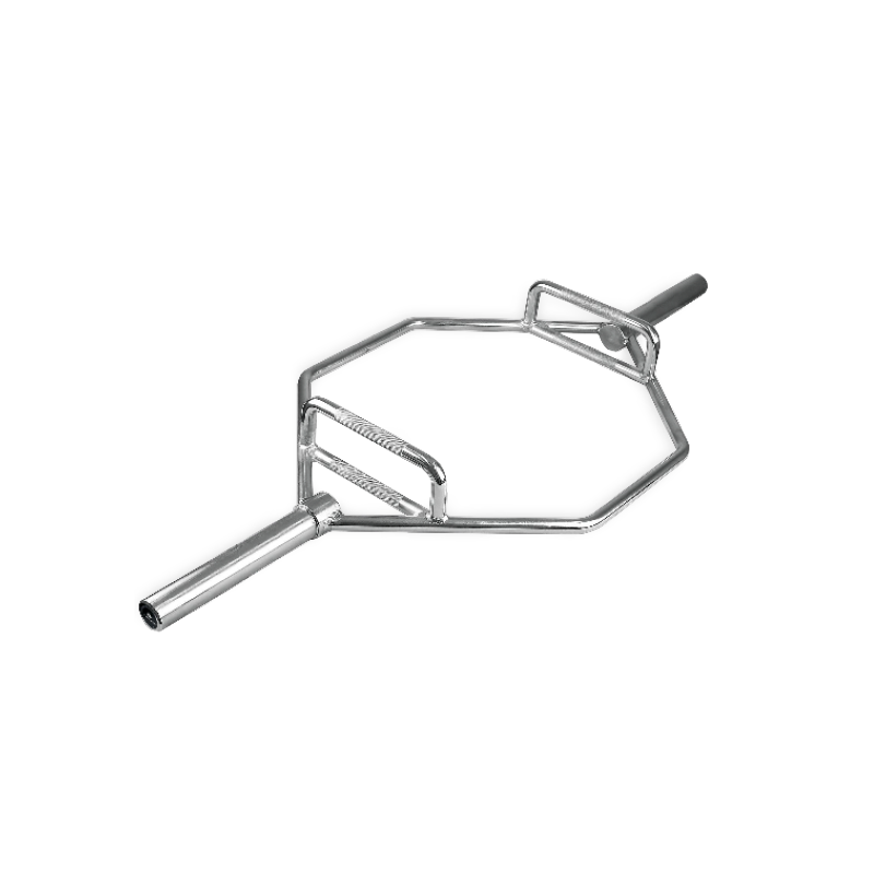 Barre d'haltères hybride olympique de 50 mm conçue pour l'entraînement fonctionnel et la musculation de haut niveau. Roulements fluides et finition chromée.