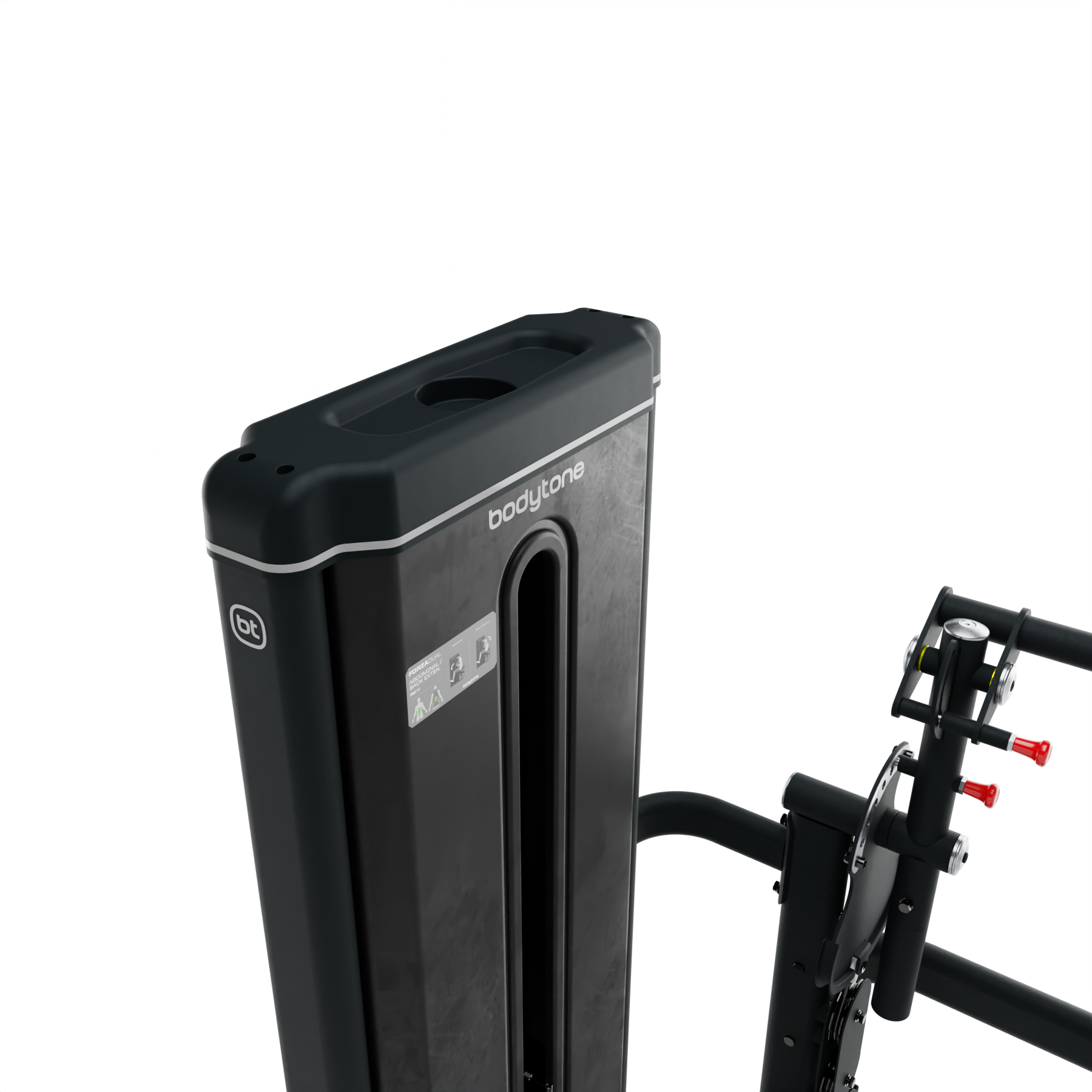 Appareil double combinant exercices abdominaux et lombaires. Permet un renforcement précis et sûr du tronc. Idéal pour les petits espaces et les programmes complets de stabilité et de posture.