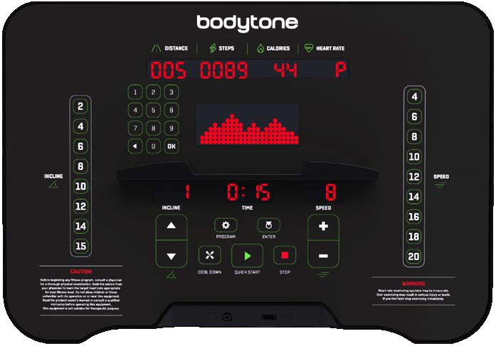 La versión LED cuenta con 7 ventanas para el seguimiento de tiempo, velocidad, inclinación, distancia, pasos, calorías y pulso, además de una matriz LED que muestra el nivel de esfuerzo requerido.