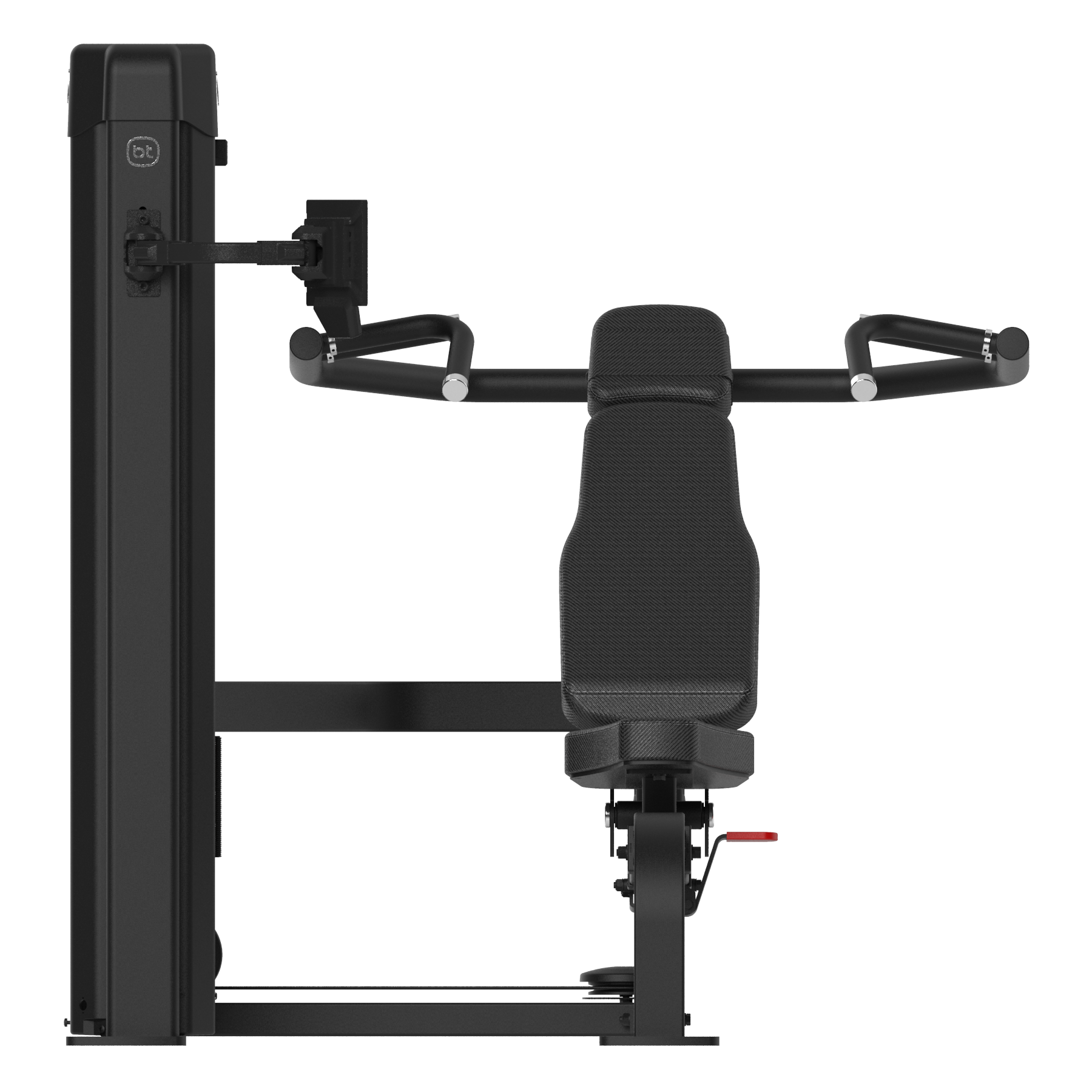 Multipresa con torre de pesas y diseño multiposición para press de hombro, inclinado y plano ajustando el ángulo del banco. Trabaja pecho, deltoides y tríceps mediante un movimiento guiado y seguro.