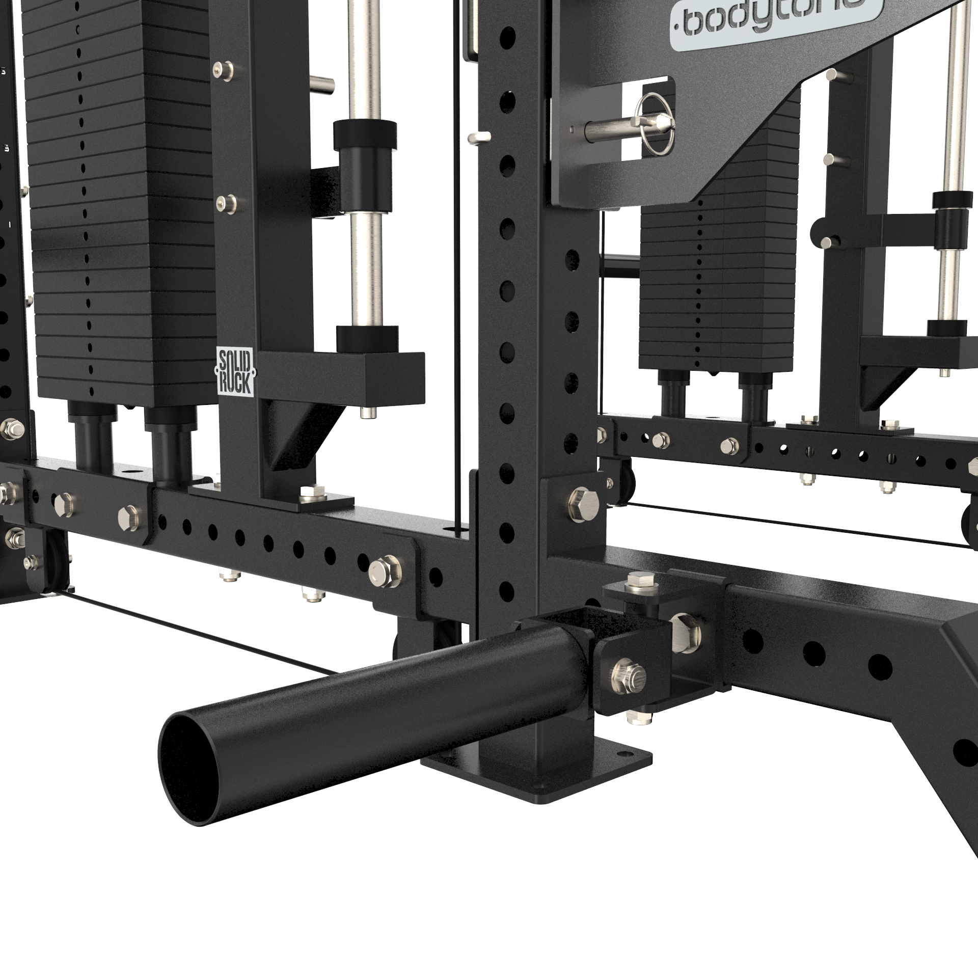 Construida sobre una estructura de acero al carbono de 3 mm, con soldadura robotizada y pletinas estructurales reforzadas, Solid SRX está preparada para soportar entrenamientos de alta intensidad y cargas elevadas de hasta 250 kg. Sus movimientos iso-laterales, bujes de acero calibrado, rodamientos de alta precisión y bases en forma de “D” garantizan un movimiento fluido, seguro y natural.