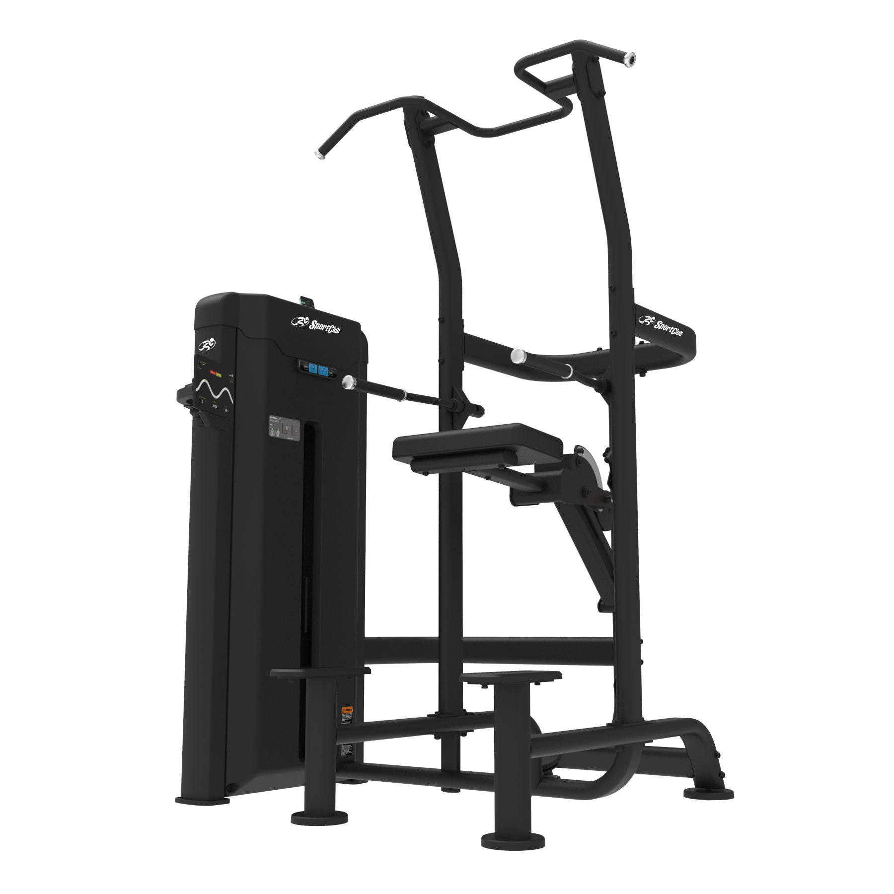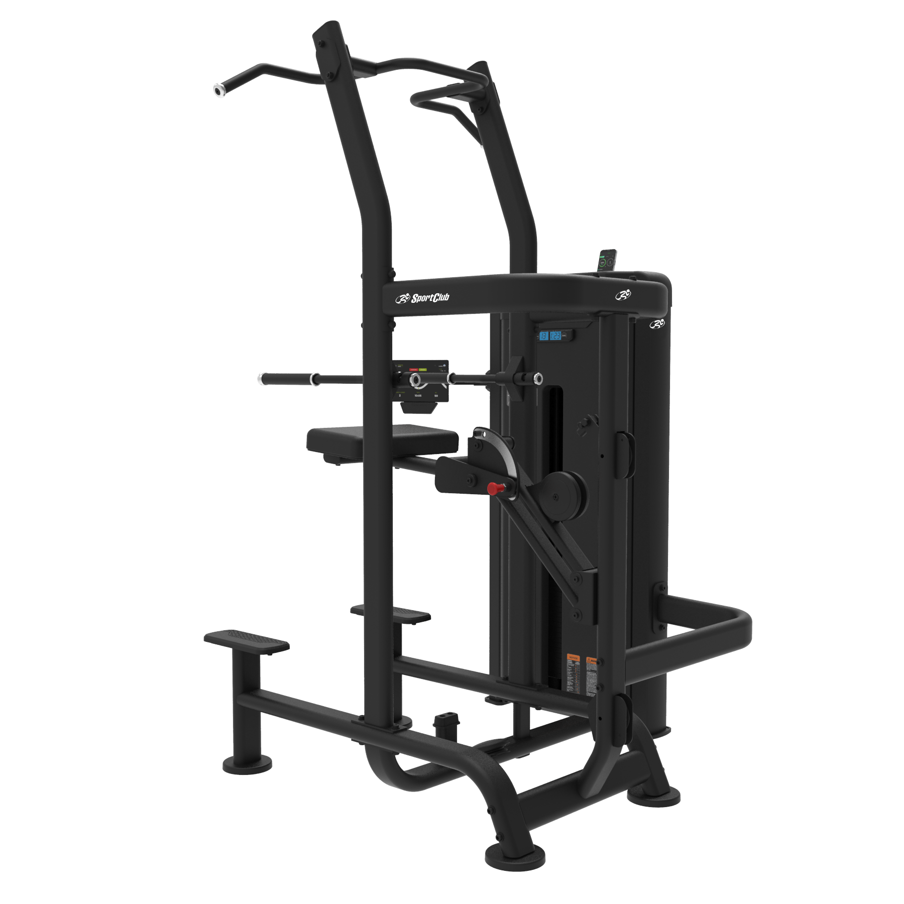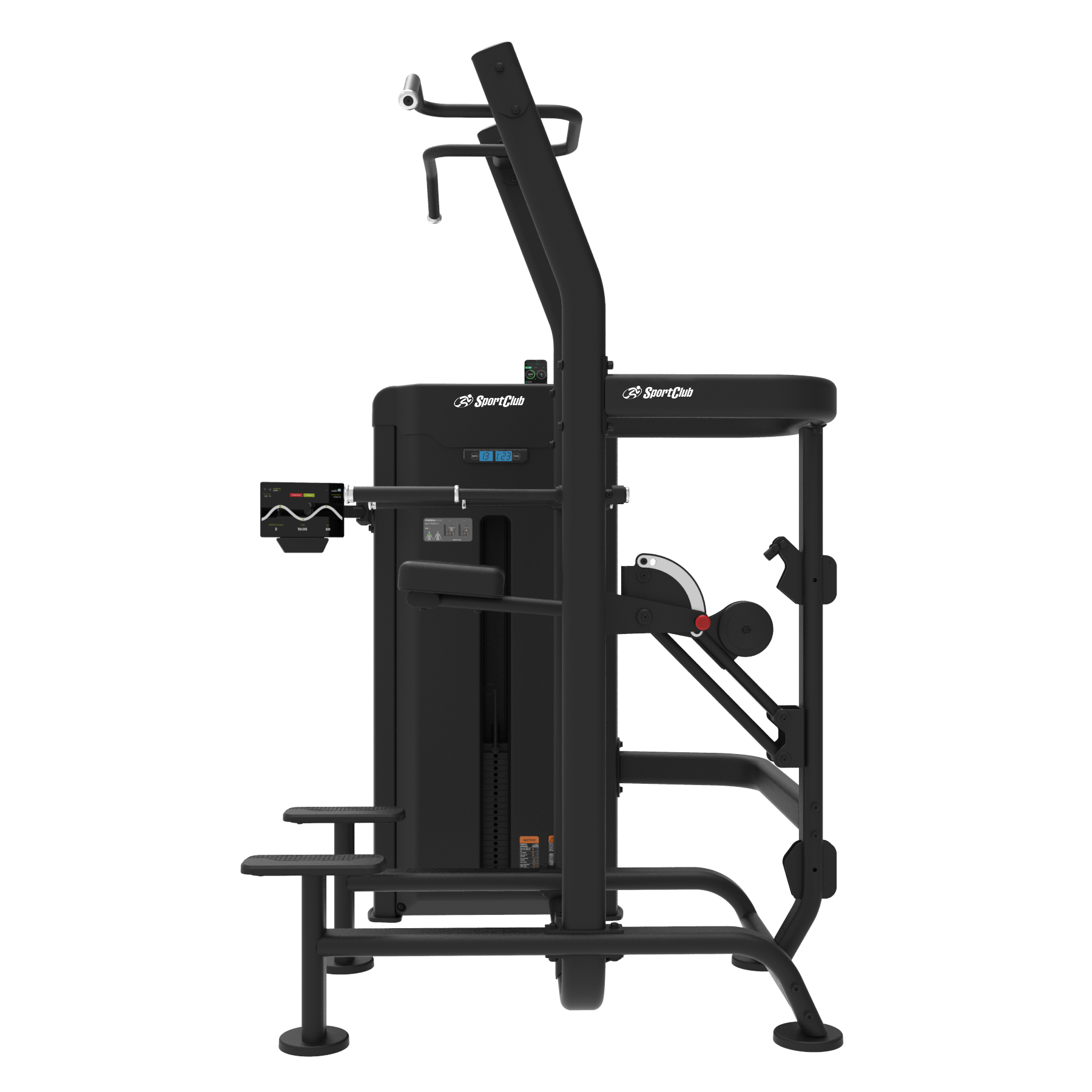 Máquina de fondos y dominadas asistidas mediante contrapeso selectorizado. Permite realizar dominadas con agarre ancho o cerrado, así como fondos para tríceps, garantizando un movimiento controlado y adaptado a todos los niveles.
